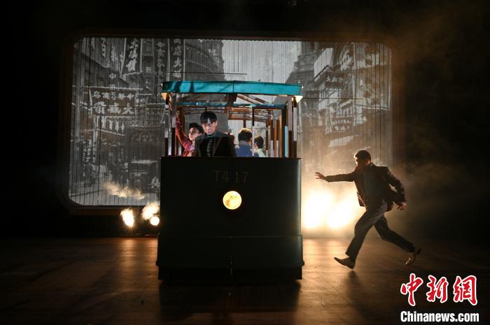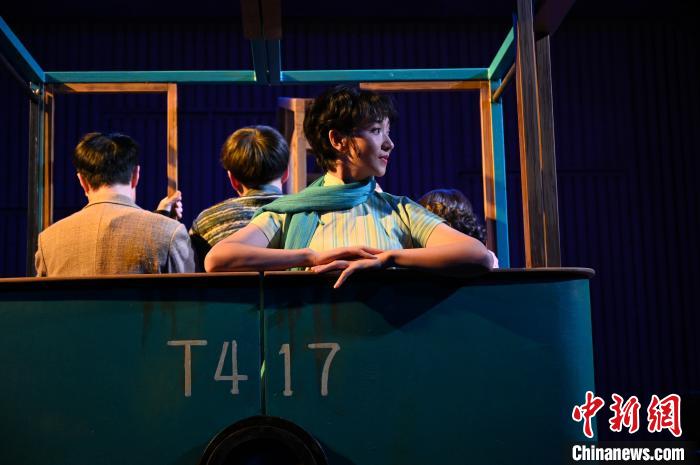 演出的大幕开启,铛铛车传来悠扬的铃声,演员们陆续进入铛铛车,扶着把手,等待这辆历史中驶来的铛铛车开启。舞台底幕的投影闪过上世纪三十年代的街景,车灯照亮前路,将观众带回到一九三七年的上海。这辆极具年代感的铛铛车也是舞台上贯穿始终的道具,通过它的分离重组,变化为石库门里弄的鸽子间和男女主邂逅的车厢,它也寓意着历史的车轮正开向充满希望的远方。