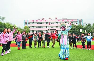 11月4日,重庆市大足区开展送戏曲进校园活动,组织当地有名的川剧演员走进雍溪镇小学,为学生们表演戏曲,并现场教授川剧知识和基本练习动作。