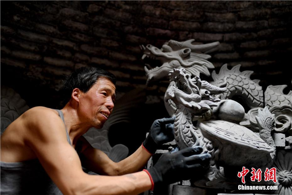 图为刘泉创作的古建脊兽泥塑。 徐振华 摄