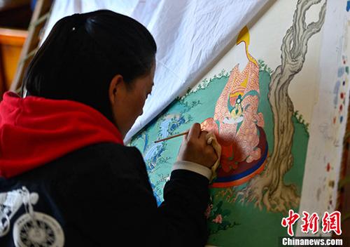 中新社拉萨4月20日电 (周文元 曾嘉)西藏官方20日在第八届西藏唐卡艺术博览会上表示,西藏唐卡专职画师约3000名左右,唐卡绘画人才结构呈现“金字塔”型,其中中青年人才占多数。