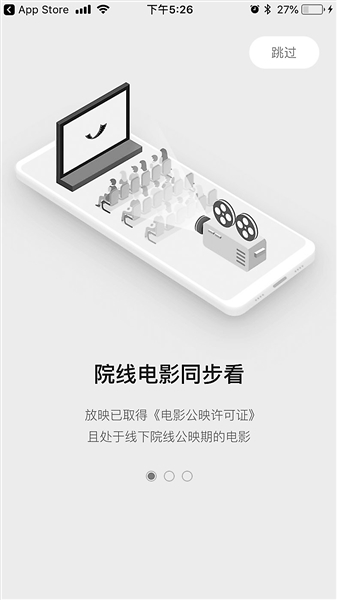 原定于5月15日正式运行的“移动电影院”,最初亮相时以“通过下载移动影院APP,观众在自家沙发里看院线同步大片就可以轻松实现”为宣传点。但刚一亮相,即被国家电影局和国家广播电视总局表态为未获许可。昨日,移动电影院方面表示,已经看到了相关报道,一切以国家相关部门发出的官方文件为准。北京青年报记者昨日在“移动电影院”APP上看到,首页宣传词为“放映已取得《电影公映许可证》且处于线下院线公映期的电影”。目前正在放映的《脱单告急》和《香港大营救》,虽都是4月份、5月份院线公映的影片,但目前已几乎没有影院再排映。