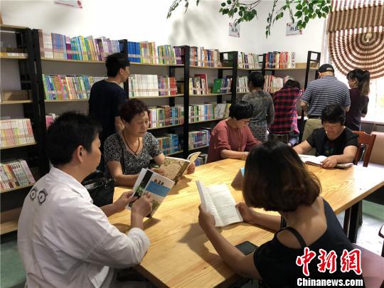 图为:当地村民正在文化礼堂内的书吧看书。 张勇 摄