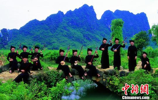 资料图:广西龙州女子演绎壮族天琴弹唱。 崇宣 摄
