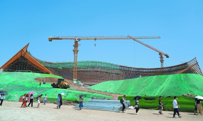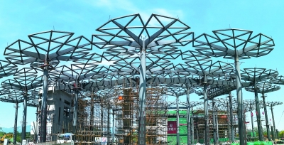 外形似玉如意的中国馆主体结构已经建设完毕,中国馆两端微微翘起,犹如鸟儿展翅一样轻盈。