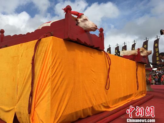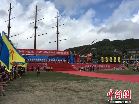 中新网宁波9月16日电(记者 林波)鲜红的地毯,从祭台伸向海边,上百位祭祀者把海碗高举过头,又低首缓缓洒在脚下;百余位渔民庄严肃立,激昂的号角冲破云霄……9月16日,随着祭海仪式的举行,第二十一届中国(宁波象山)开渔节(以下简称“开渔节”)——中国农民丰收节系列活动开船仪式在浙江省宁波市象山县石浦港举行。