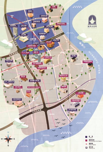 如今走进人民广场周边的各大剧场,在票房和宣传区都会码着一叠叠“演艺地图”。展开折页,39个剧场、展演空间的地址、历史和特色被清晰标注。从人民广场中心点出发,沿着地图指引,穿一条马路,过一个街角,便能看上一场戏。而扫一扫地图上的二维码,每月必看戏码一览无余,关注一下剧场微信号,演前导赏报名、在线购票轻松完成。