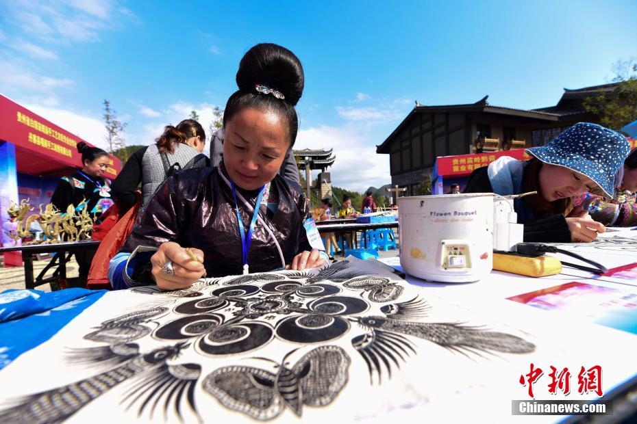 蜡染画师在参加蜡染比赛。中新社发 杨武魁 摄