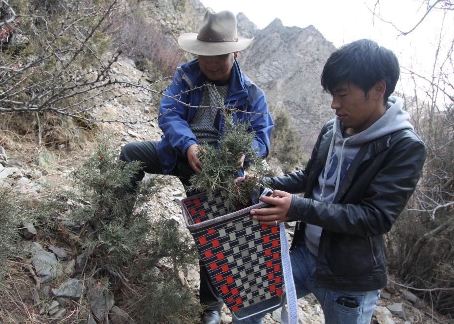 在西藏山南,两位曼巴(治疗师)正在适时采集药浴药材。巴桑伦珠 摄 中国非物质文化遗产保护中心供图