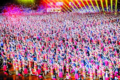 万人献礼海南建省办经济特区30周年 同跳竹竿舞破吉尼斯纪录