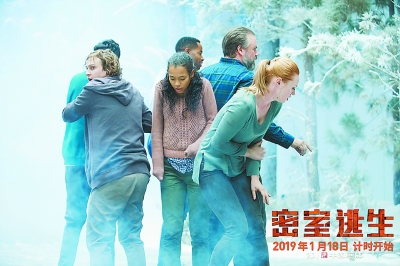 相比之下,《密室逃生》优势最少,既无当红辣子鸡明星,亦无幕后大咖坐镇,但也是毛病最少的一个。影片一如其名,就是个游戏杀,只不过将游戏演绎成真,将我们日常玩的“密室逃生”安全淘汰演绎成了“密室杀人”,入局者只有通关逃生一条路可走。听上去大有《饥饿游戏》的即视感,只不过将虚拟未来放到了现实当下,一众日常男女被诱拐入局,发现问题为时已晚,没了悔路和退路。它虽说简单粗暴,但步步惊心,一气贯通,全程无尿点。