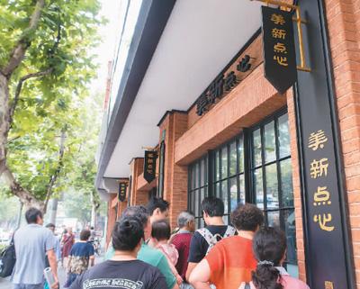 2018年9月7日,改造升级后的上海陕西北路老字号专业街全新亮相。当天中午时分,食客在老字号店铺美新点心店前排起了长队。