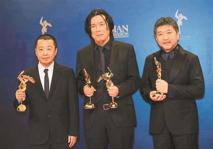 当晚,贾樟柯还与日本导演是枝裕和一起,为韩国导演李沧东颁发了终身成就奖。贾樟柯、是枝裕和与李沧东同时也分别是本届亚洲电影大奖最佳编剧、最佳影片、最佳导演三项重要荣誉得主,三位亚洲当代著名导演罕见同台,场面感人。