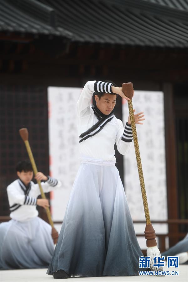 4月10日,舞蹈演员在第35届兰亭书法节开幕式上表演。 当日,第35届兰亭书法节开幕式在浙江绍兴兰亭景区举行,来自海内外的书法家身着晋服,在曲水边品酒、赋诗、挥毫,再现曲水流觞盛况。 新华社记者 黄宗治 摄