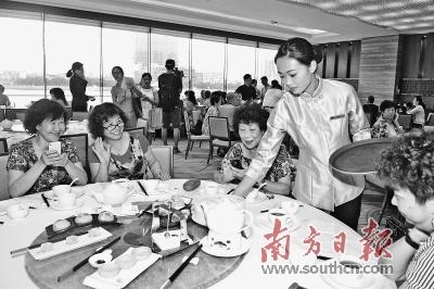 白天鹅宾馆宏图府的早茶重开,众多市民赶来捧场。南方日报记者 吴伟洪 摄
