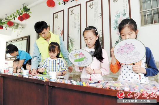 荷花、梅花、菊花、向日葵……一朵朵花儿绽放在团扇上,原本普通的扇子变成宣传廉洁文化的“使者”。昨日,天心区桂花坪街道、九峰苑社区、趣童年公益服务中心以及湖南鲲鹏物业和桂园服务中心联合举办“廉政清风进社区,共建和谐迎六一”主题活动。在和桂园小区党建中心,党员、居民代表、青少年等共绘廉洁画,倡廉洁,扬清风。 (长沙晚报全媒体记者 石祯专 卜劲文 摄影报道)