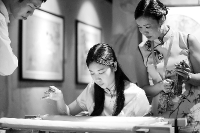 展厅一隅,从事广绣30余年的广东省级代表性传承人谭展鹏认真观察观众反应,难掩内心的激动:“这是新中国成立70年来广绣第一次在北京举办专场展览,意义非凡。各个时期的广绣代表作品不仅向观众诉说了广绣的历史文化积淀,还生动呈现了广绣在当代传承的新面貌。”