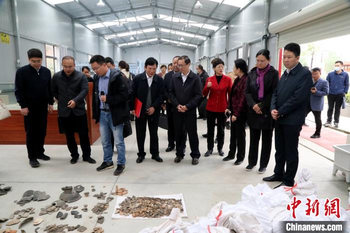 与会人员参观从凤凰咀遗址发掘的文物 崔海晗 摄