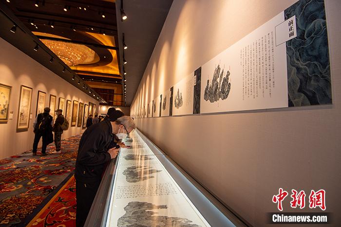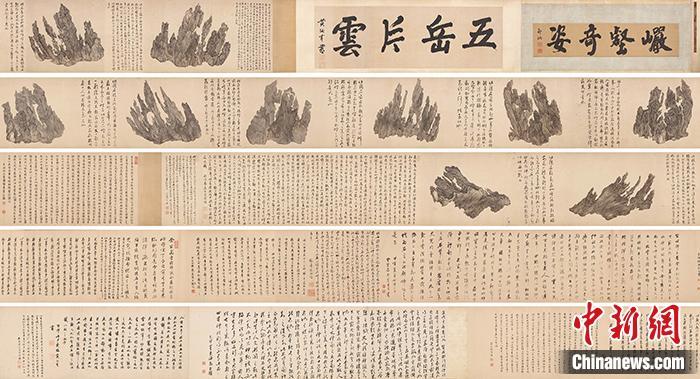 拍卖预展中的《十面灵璧图卷》。展方供图