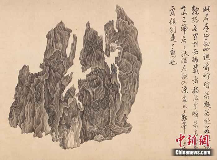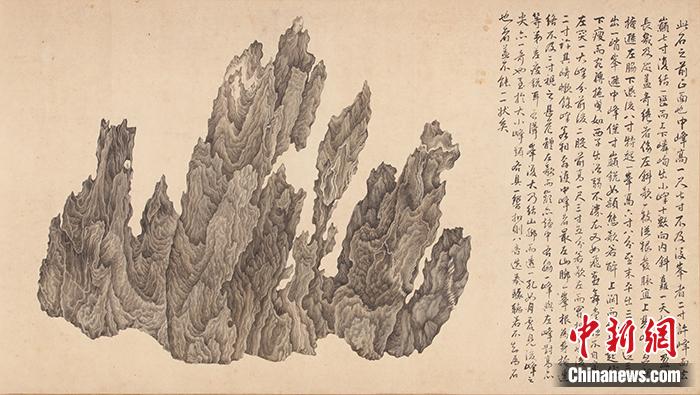 《十面灵璧图卷》中所绘制奇石的左正面。拍卖行供图