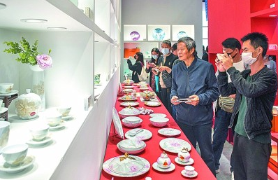 10月18日,第17届中国景德镇国际陶瓷博览会在江西景德镇国际会展中心开幕,展会共设国际标准展位1500个,近千家品牌陶瓷企业、陶瓷艺术家和多名采购商到会展示、采购贸易,还首次采用线上线下相结合的方式,通过与天猫电商平台合作,打造“云瓷博会”。据介绍,本届瓷博会将持续至22日。图为参观者观看陶瓷展品。
