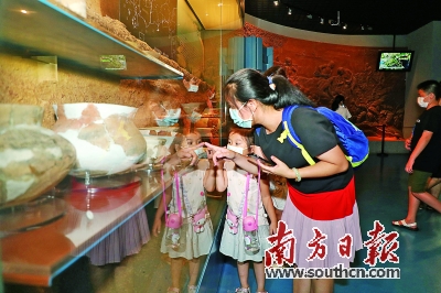 在深圳博物馆,家长带孩子参观展览学习传统文化。 南方日报记者 朱洪波 摄