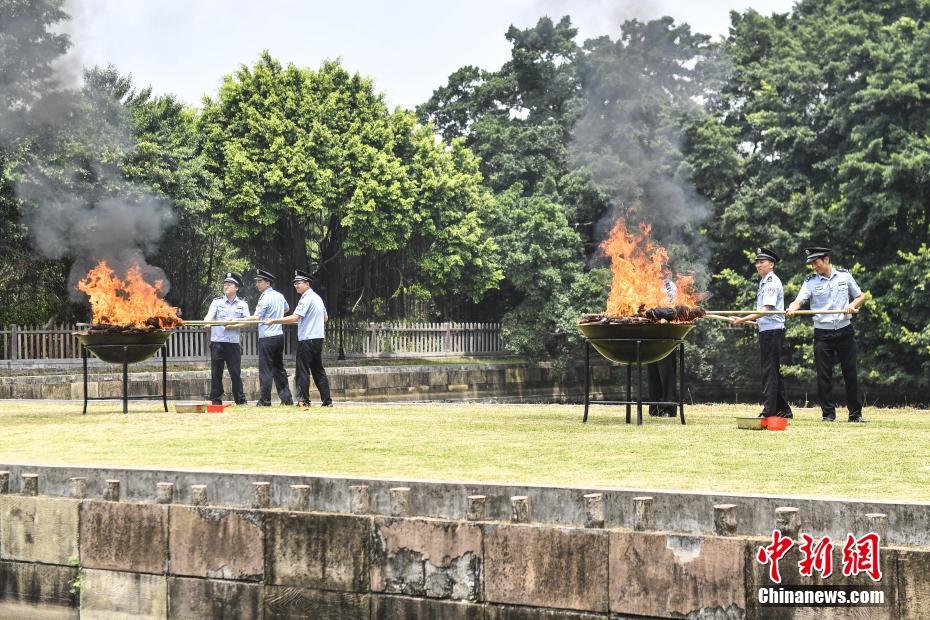 6月3日,“健康人生·绿色无毒”广东省“6·3”虎门销烟纪念日活动在广东东莞举行。活动通过毒品模拟实物展示、禁毒图片巡展展板、现场销毁毒品等方式向民众集中展示近年来广东禁毒工作成果。图为销毁毒品仪式现场。中新社记者 陈骥旻 摄