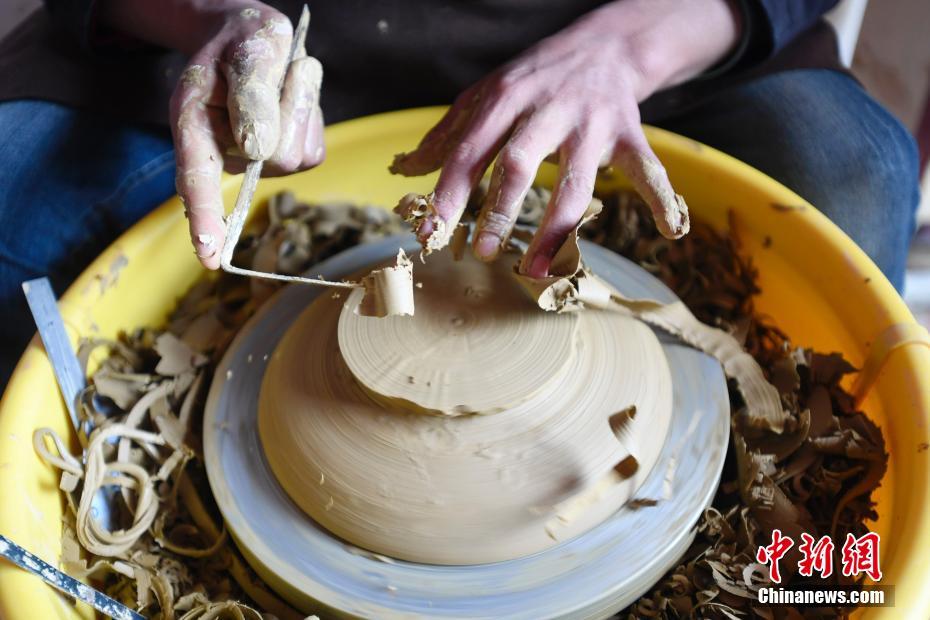 6月4日,记者来到四川阿坝州壤塘县探访该县壤巴拉藏式陶艺传习所,壤巴拉藏式陶艺传习所于2016年成立,设置藏式陶艺专业,依托多位藏式陶艺传承老师给学员教授藏式黑陶制作技艺,传习所在传承藏式陶艺的基础上,结合现代科技创作符合现代文化特色的陶艺艺术品,发展延续藏陶的工艺,弘扬和传播藏陶文化及相关的民俗文化。图为藏陶工艺——修坯。安源 摄