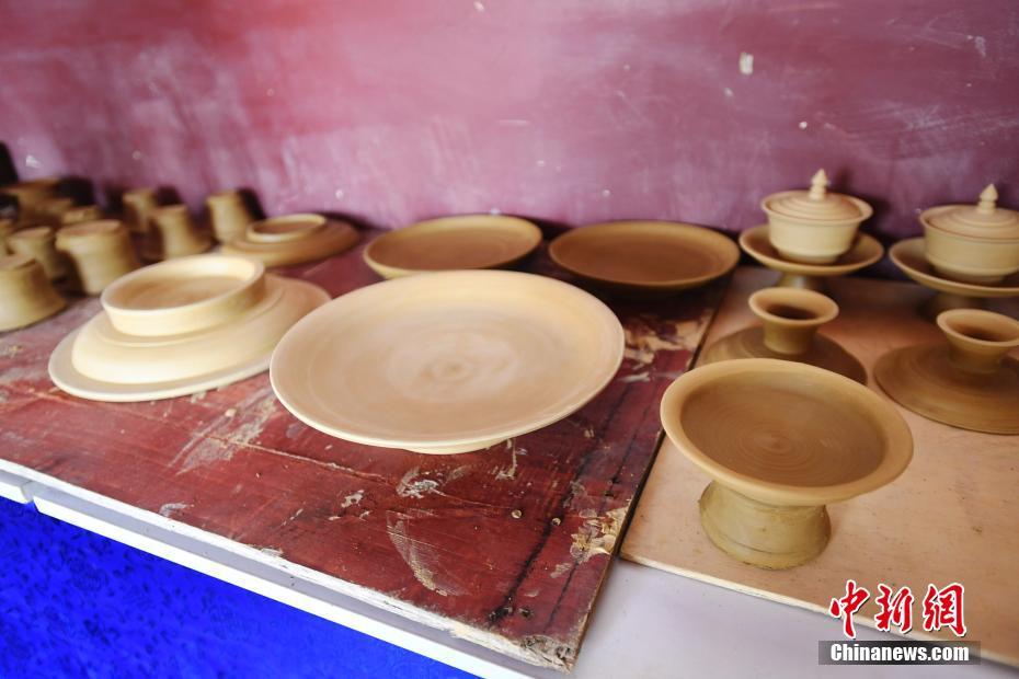 6月4日,记者来到四川阿坝州壤塘县探访该县壤巴拉藏式陶艺传习所,壤巴拉藏式陶艺传习所于2016年成立,设置藏式陶艺专业,依托多位藏式陶艺传承老师给学员教授藏式黑陶制作技艺,传习所在传承藏式陶艺的基础上,结合现代科技创作符合现代文化特色的陶艺艺术品,发展延续藏陶的工艺,弘扬和传播藏陶文化及相关的民俗文化。图为藏陶工艺——阴干。安源 摄