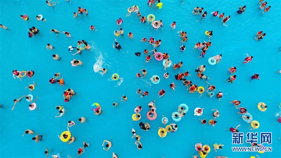 7月7日,游客在湖南省永州市道县水上乐园戏水。当日是农历小暑节气,人们通过各种方式纳凉消暑,享受夏日乐趣。