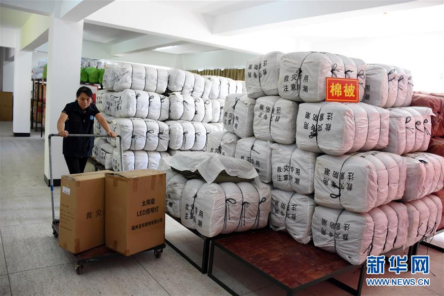 7月9日,福建省龙岩市永定区民政局工作人员做好应急救灾物资准备。