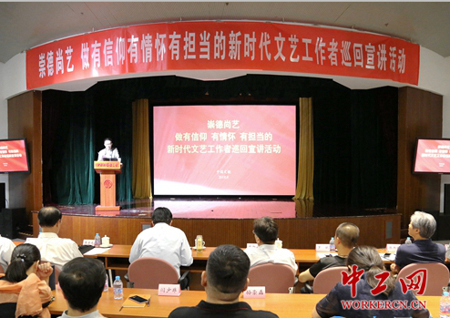 据介绍,此次宣讲活动是中国文联学习贯彻落实习近平总书记关于文艺工作的重要论述,展现文艺界正风正气,树立文艺界良好形象,团结凝聚更多从业者、爱好者立志做有信仰、有情怀、有担当的新时代文艺工作者的一项重要举措。