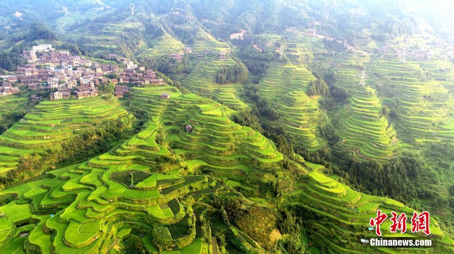 图为侗族自治县独峒镇知了村梯田,层层叠叠。 龚普康 摄