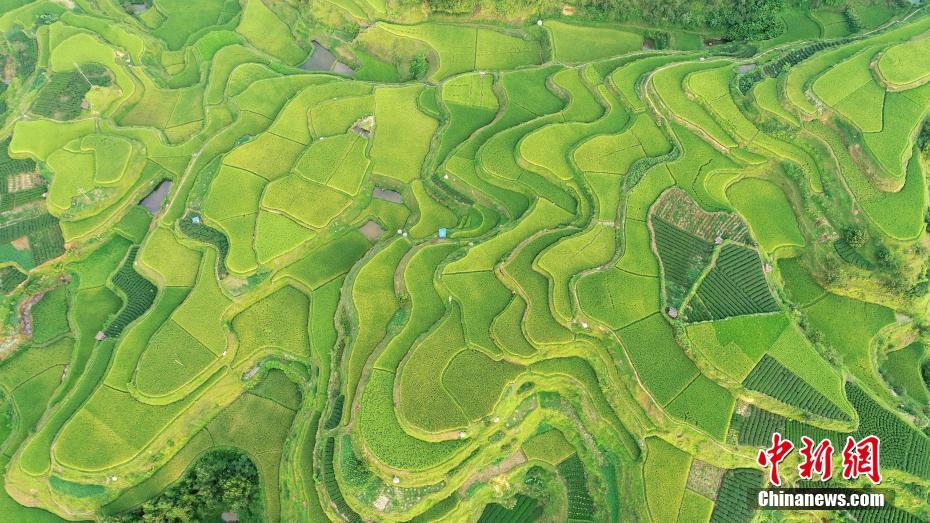 航拍三江侗族自治县独峒镇知了村梯田,田埂如画框般勾勒出梯田的轮廓。 龚普康 摄