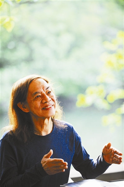 秋风乍起,柿红时节,西溪更添野逸。蔡志忠先生的工作室,就掩映在西溪的烟树碧水中。坐在临水的露台上,品着自酿的啤酒,白衣素裤、长发飘然,这位酷酷的漫画家,给我们讲他的创作故事。冷不丁,兴致勃勃的他,表演起了扑克魔术,又展示他“手长”的奥秘,还和我们玩心理学游戏,教我们学“外语单词速记”,图形加数学的运用,方法新鲜,他的“脑筋急转弯”,把年轻的小记们都甩到了坑里。“其实我会11门技艺或学问,漫画只排第三。”蔡志忠淡淡地说。曾经说过“努力是没有用”的他,“速度是别人的一百倍”,“画画,要快,比上次快;要好,比上次好;价格嘛,自然比上次还要高。”