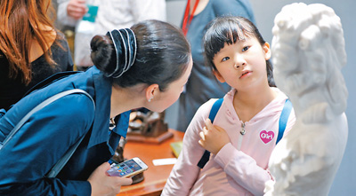 在北京国际广播电影电视展览会现场,参观者通过VR技术体验全景视频(2017年8月24日摄)。