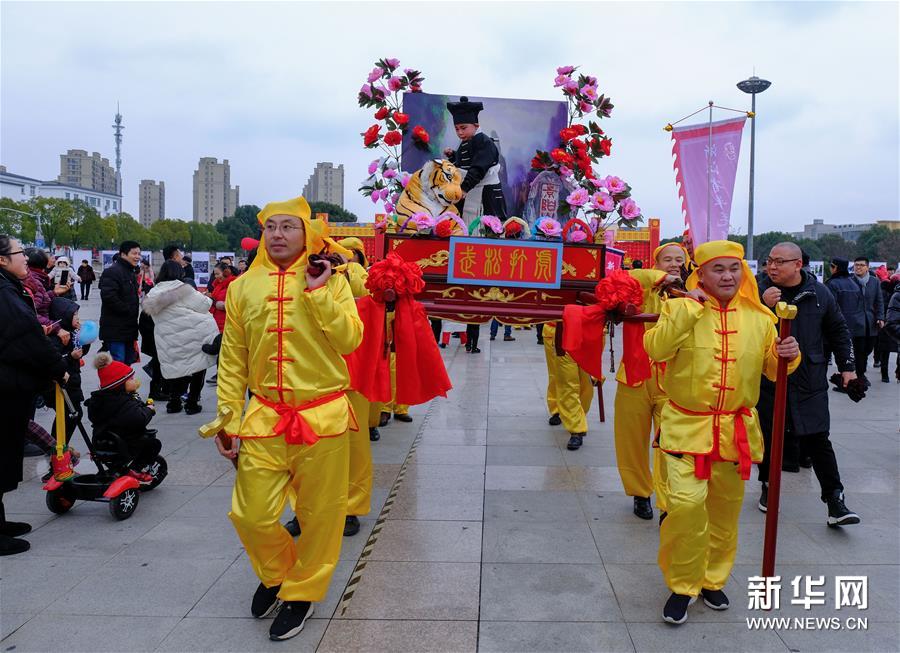 2019年1月1日在展演活动上拍摄的“抬阁”表演。 新华社记者徐昱摄