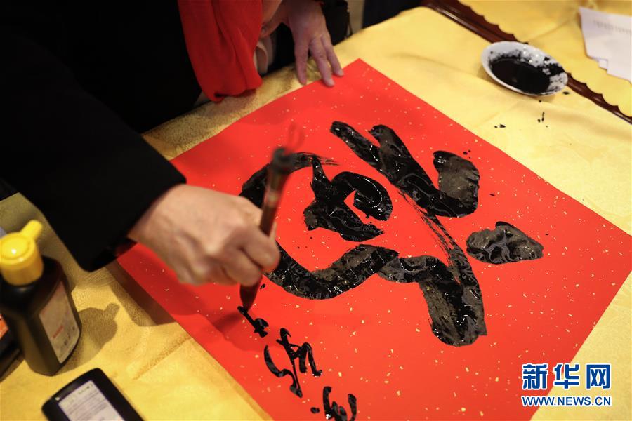 中国书法家在日本横滨挥毫泼墨送“福”迎春