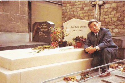 1981年,柳鸣九在法国巴黎萨特墓前。