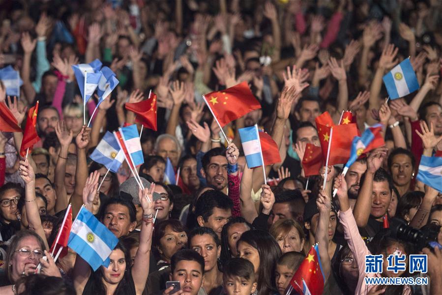 2月3日,在阿根廷布宜诺斯艾利斯,观众在“欢乐春节 魅力阿根廷”猪年春节庙会现场挥舞中阿两国国旗。 新华社发(马丁·萨巴拉摄)
