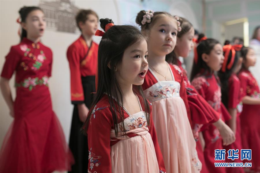 2月2日,在俄罗斯首都莫斯科市郊的中共六大会址常设展览馆举办的新春联谊会上,孩子们在一起合唱。中俄青少年共同迎接中国农历新年,在文化交流中传承友谊。新华社记者白雪骐摄
