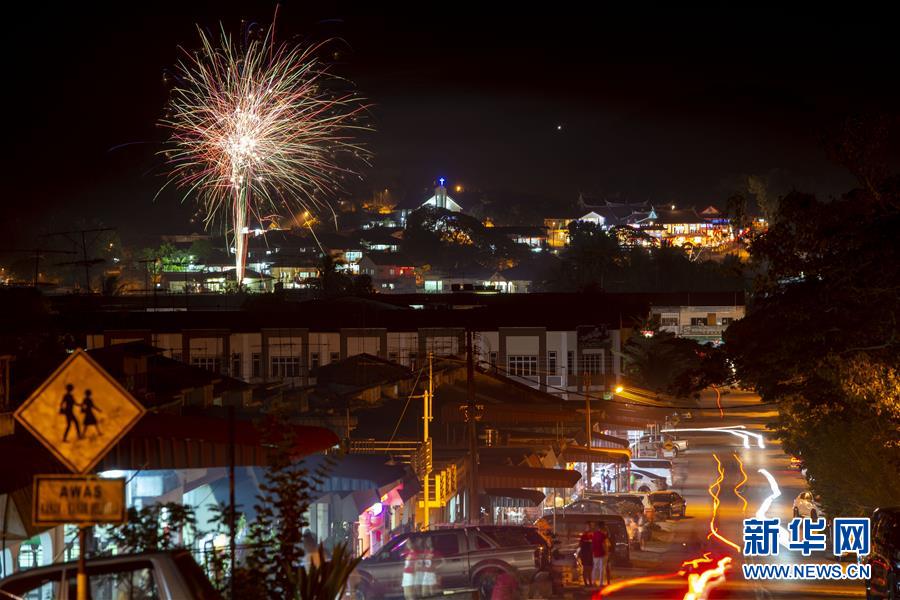 2月5日凌晨,在马来西亚柔佛州的巴罗,人们燃放焰火,迎接农历新年的到来。 新华社发(张纹综摄)