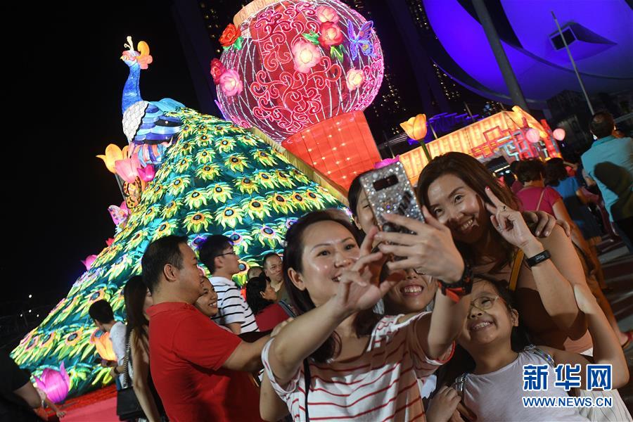 2月3日,人们在新加坡滨海湾举行的“春到河畔2019”迎新春活动上合影。新华社发(邓智炜摄)