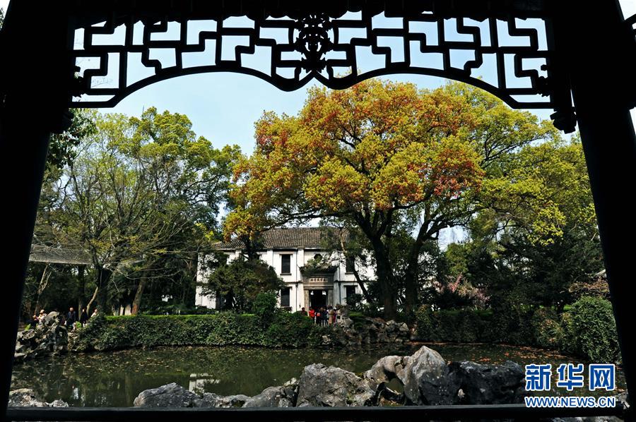 湖州市南浔镇嘉业堂藏书楼的园林风貌(3月31日摄)。 暖春时节,中国历史文化名镇——浙江省湖州市南浔镇一派春意盎然景象。地处太湖南岸的南浔镇所产“辑里丝”驰名中外,当地的水乡风貌和园林宅院,吸引众多海内外游客观光游览。 新华社记者 谭进 摄