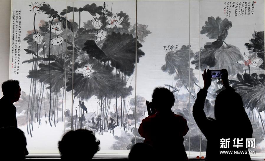 4月1日,游客在展览上参观拍摄。 当日,张大千120岁纪念大展在台北故宫博物院开展,本次展览共展出张大千87组件作品、80多个张大千的自用印章等。 新华社记者 张国俊 摄