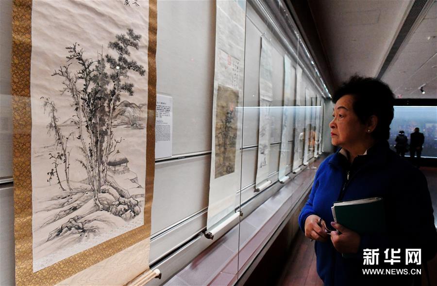 4月1日,游客在展览上参观。 当日,张大千120岁纪念大展在台北故宫博物院开展,本次展览共展出张大千87组件作品、80多个张大千的自用印章等。 新华社记者 张国俊 摄