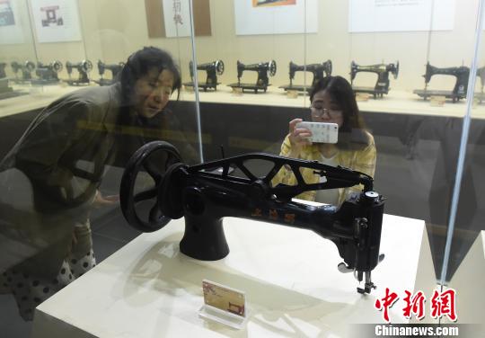 展出的古董缝纫机吸引市民驻足拍照。周毅 摄