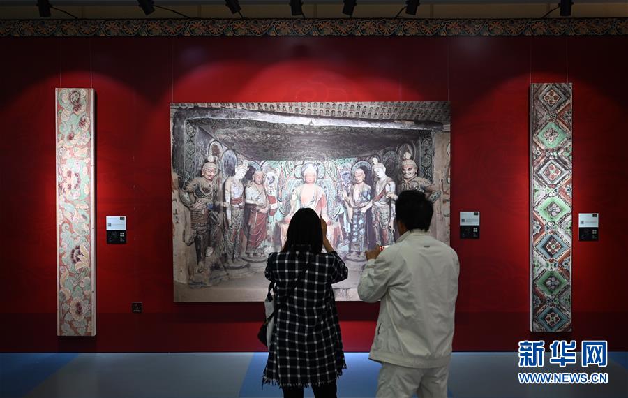 4月10日,参观者在展览上观摩。 当日,“敦煌 穿越千年的永恒——敦煌壁画艺术精品高校公益巡展”在云南大学开幕。此次展览选取敦煌石窟近50幅精美的壁画,分别以尊像、建筑、图案、飞天、民俗生活等极具代表性的专题,充分展现了敦煌壁画的艺术魅力。该系列展已陆续在全国30多个高校举办,取得了良好的效果。 新华社记者秦晴摄
