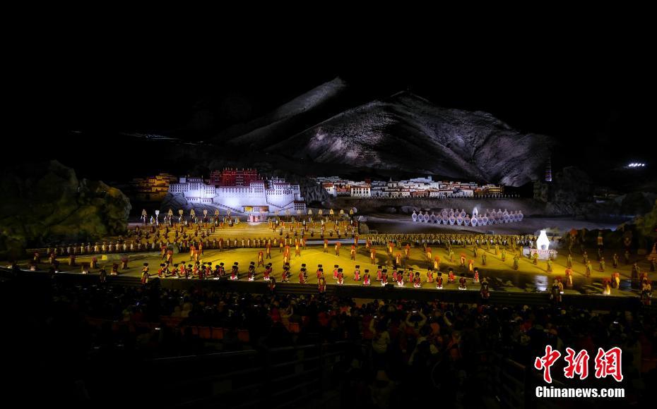 4月20日晚,大型实景剧《文成公主》第七季在拉萨市次角林上演。该剧以拉萨自然山水为背景,讲述了文成公主与松赞干布和亲的历史故事。全剧分为五幕,时长约90分钟,自2013年首演以来,该剧已成功演出逾千场,接待观众210万余人次。其中,2018年演出季共计演出187场,接待游客50万人次,票房收入超过1.5亿元人民币,带动了当地大批农牧民就业。中新社记者 何蓬磊 摄