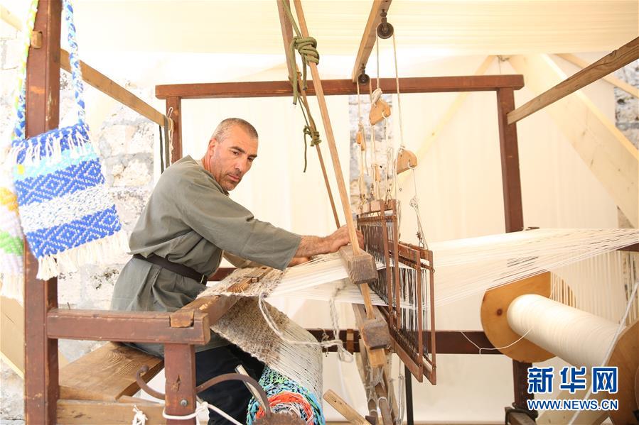5月5日,在马耳他姆迪纳古城举行的中世纪文化节上,一名身着欧洲中世纪时期服饰的演员展示传统织布方法。 新华社发(袁韵摄)