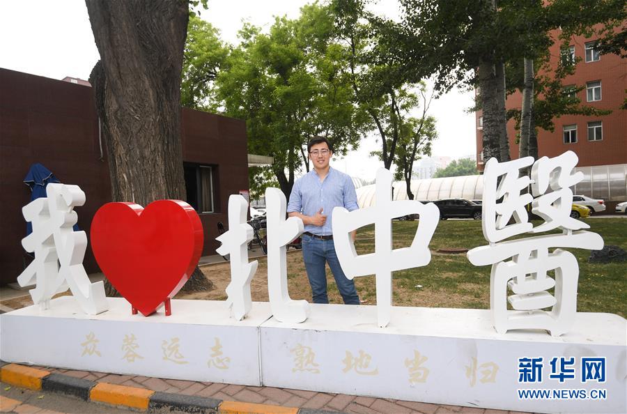 5月14日,萨震在北京中医药大学校园内留影。新华社记者陈晔华摄